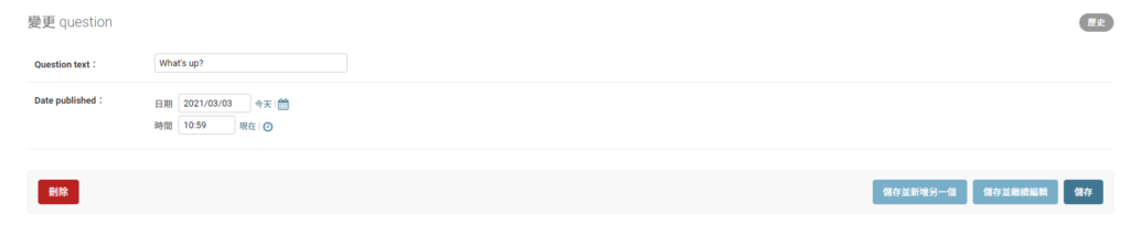 修改第一筆資料問題的文字為 “What’s up?” 並且儲存
