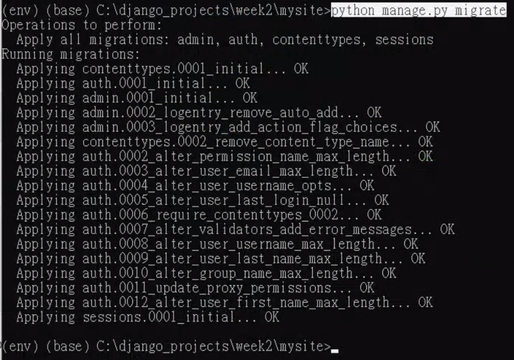 輸入以下的指令執行寫入資料庫,建立以及修改資料表