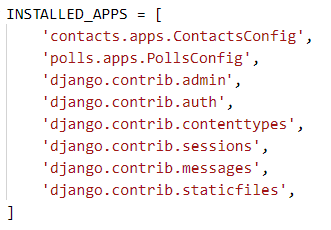 開啟 mysite/settings.py,在 INSTALLED_APPS 加入一行
