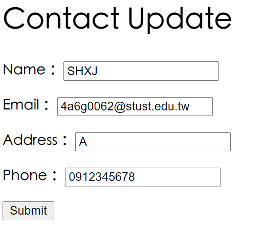 依序輸入表格中的資料並且按下 Submit 即可成功建立資料