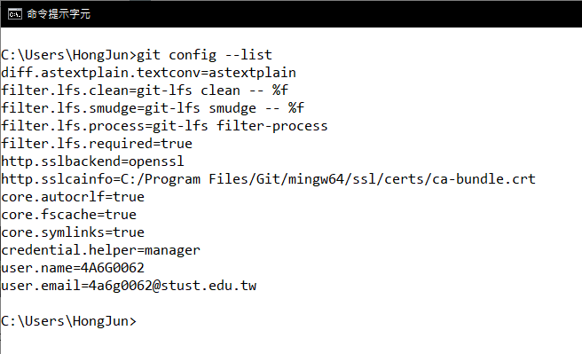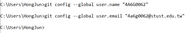 git config --global user.name "您的學號" git config --global user.email "您的Email"