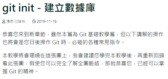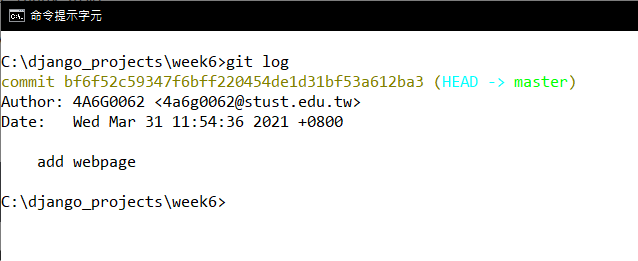 此時透過以下的指令,提交一個 commit ,這樣檔案就會儲存到資料庫