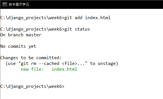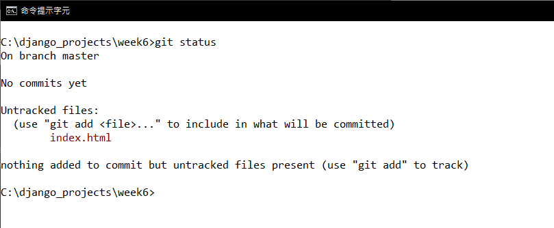 再來輸入以下的指令追蹤 index.html,並且再次查看狀態