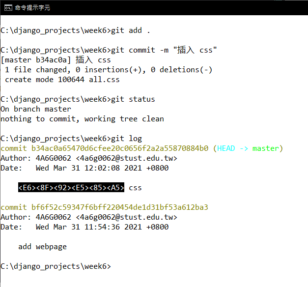 再次新增一個檔案 all.css ,裡面不用打入任何文字,並且輸入以下指令追蹤並且同步最後查看 log