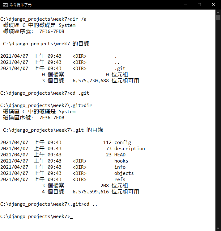 首先建立 week7 的目錄,並且建立基本的資料庫