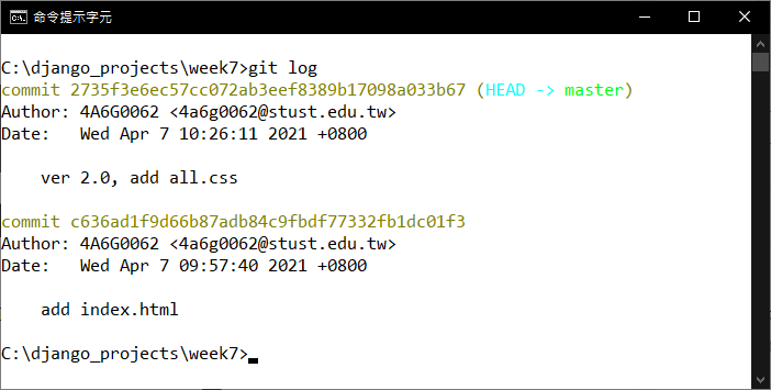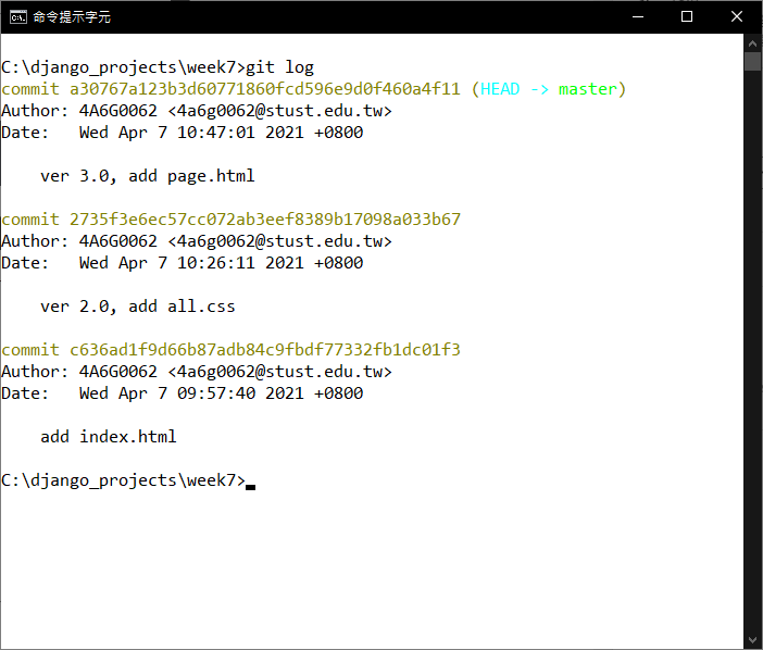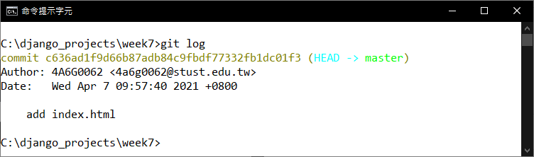 最後要把加入到索引區的檔案,正式的提交一個新的 commit