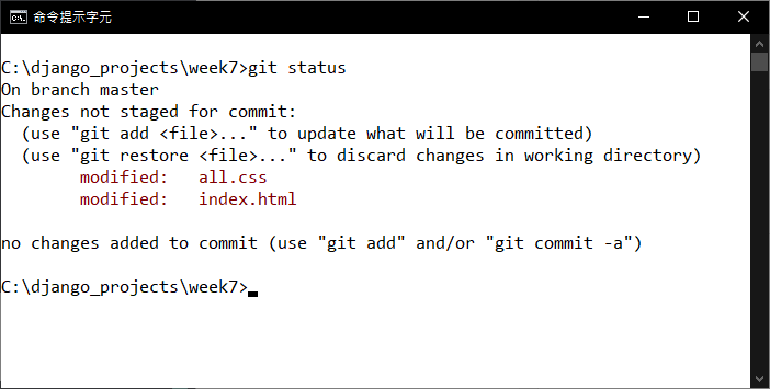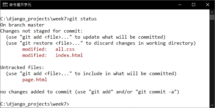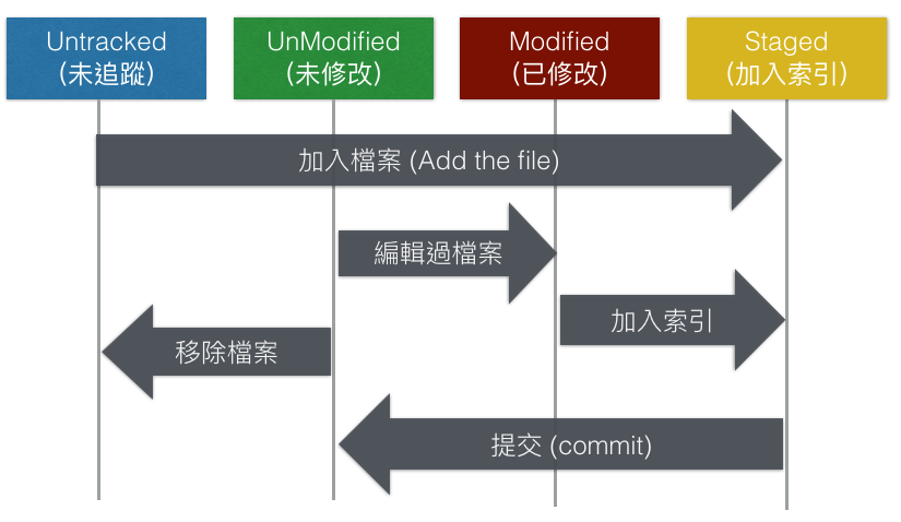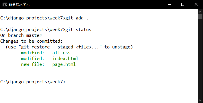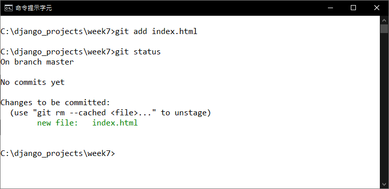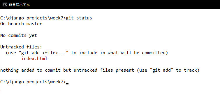 現在,把 index.html 檔案加入到索引區,並且再次查看檔案的狀態