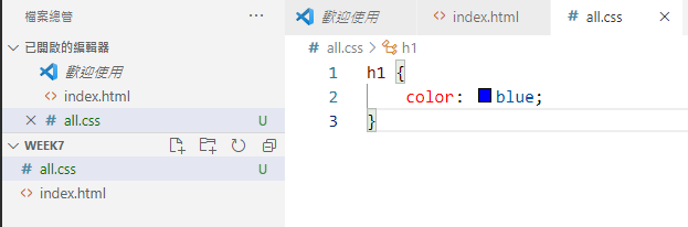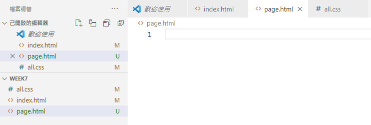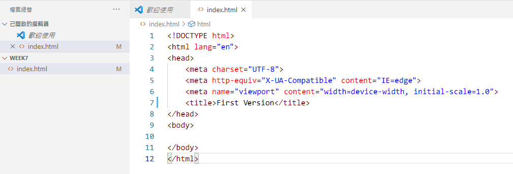 在 week7 底下新增一個檔案 index.html ,在裡面貼上以下程式碼