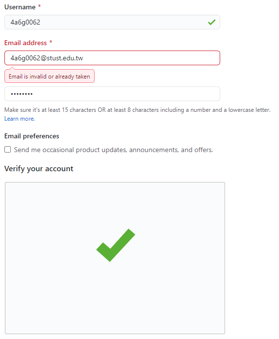 首先,註冊一個 Github 帳號,輸入以下的資料