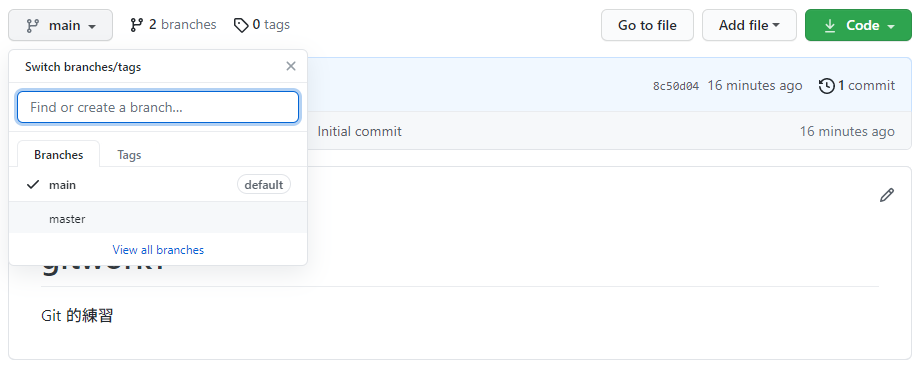 首先將 master 分支設定為預設的資料庫,在上方工具列點選 Settings