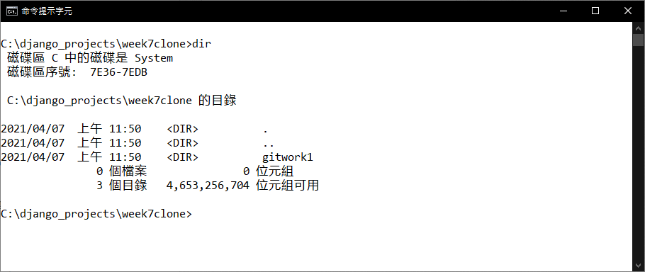 回到終端機,建立一個新的專案資料夾 week7clone 在上一層目錄