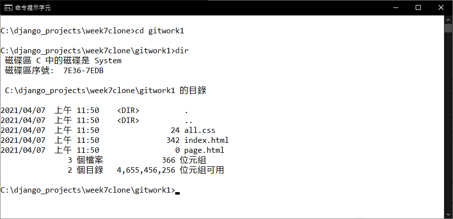 進入 gitwork1 資料夾觀察,可以發現剛剛建立的檔案