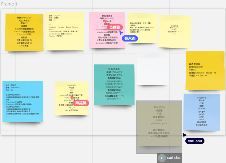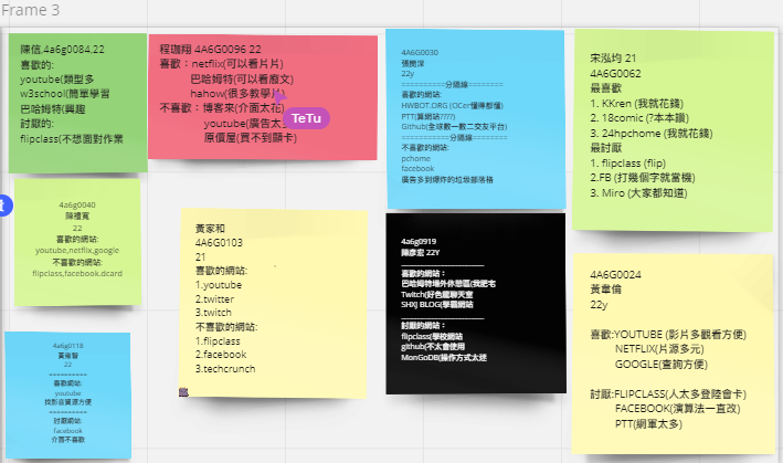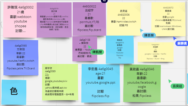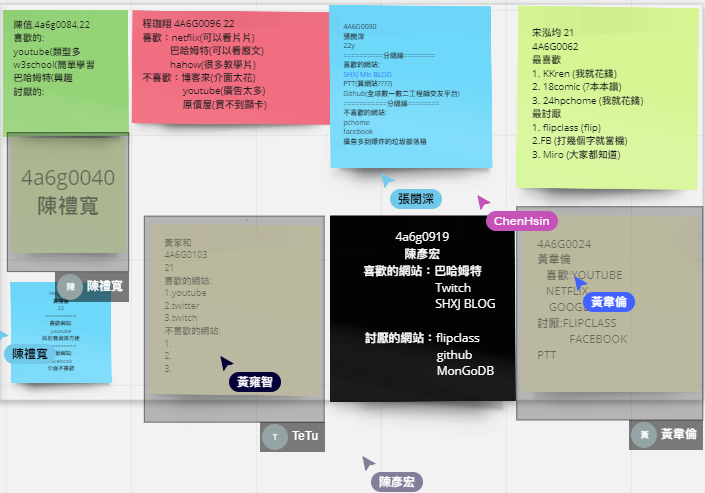 - 每個人寫出最喜歡的3個website及最討厭的3個website(便利貼)
