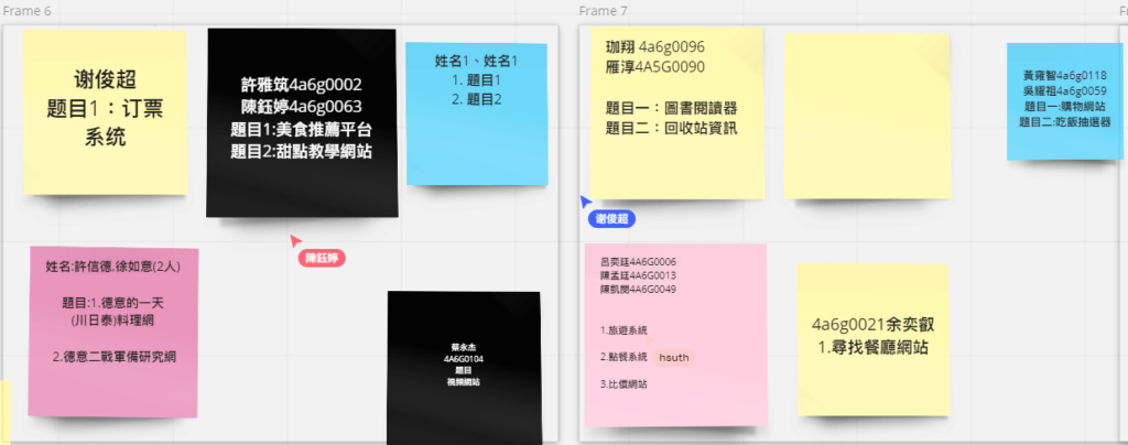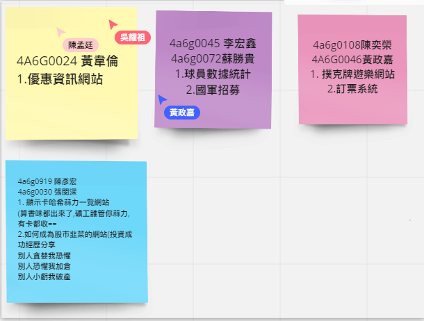 - 每個人寫出想解決的問題(想設計的website)(便利貼)